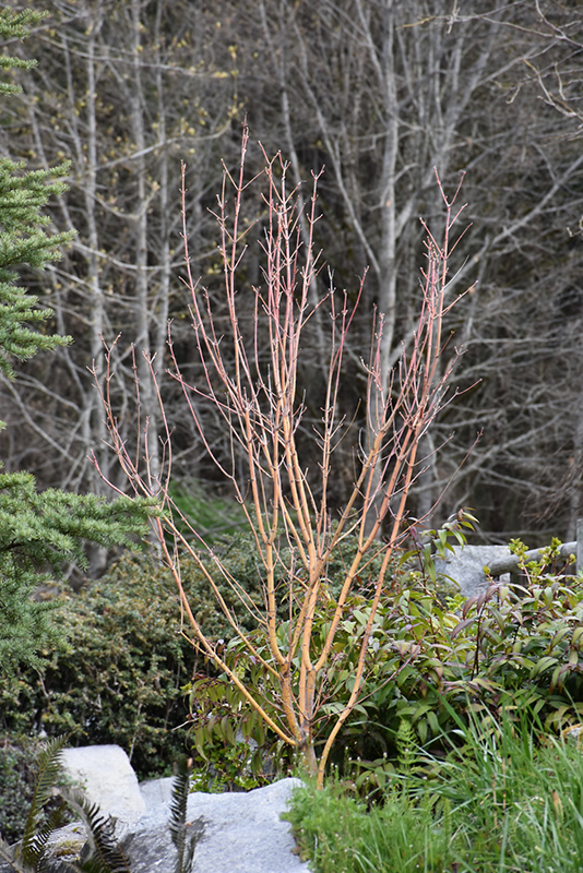 A vigorous small ornamental shrubby tree with beautiful coral stems in winter; rich green leaves in summer turn sunny yellow in fall; best with some shelter, needs moist soil, water more if grown in full sun
